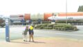設置されたフープに着地するよう、狙いを定めますが・・・