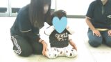 クジと同じ色のテープが巻かれたフープで床にタッチ!!