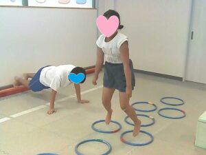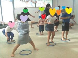 フープを使用してグーチョキパー記憶ジャンプと忍者ゲームも行いました(*´ω`*)