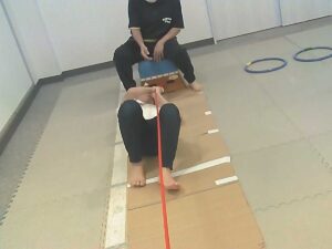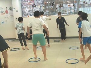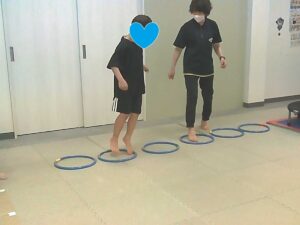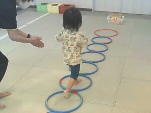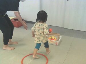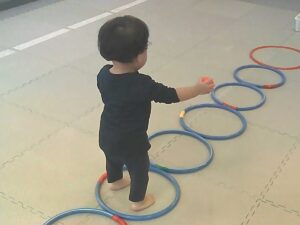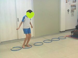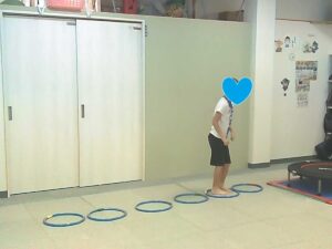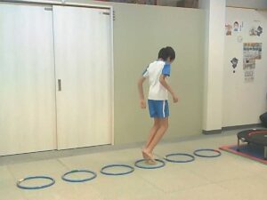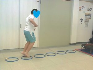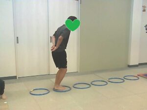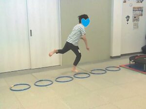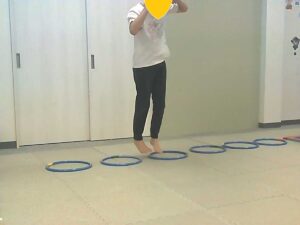 ジャンケンで負けたらフープジャンプの跳び方が変わります♬