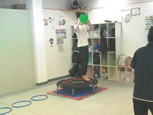 トランポリンで大きくジャンプして・・・・