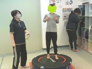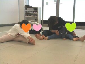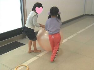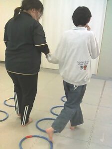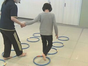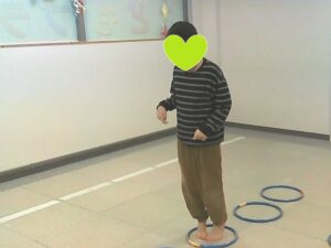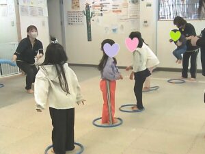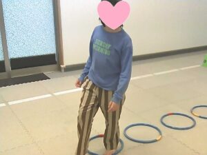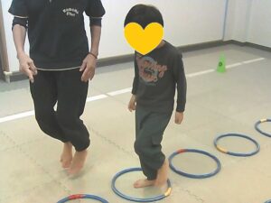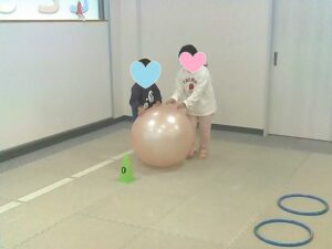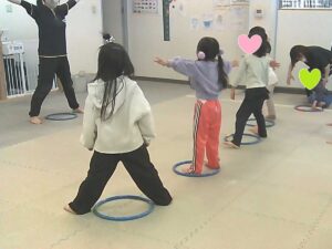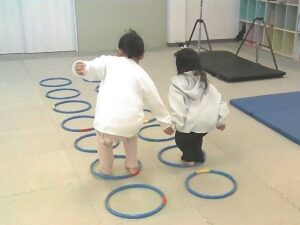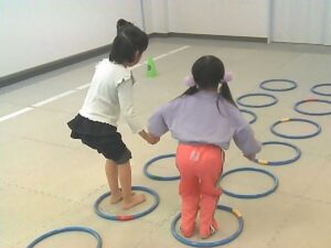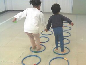 お友達とペアになって、フープジャンプも息ピッタリ✨