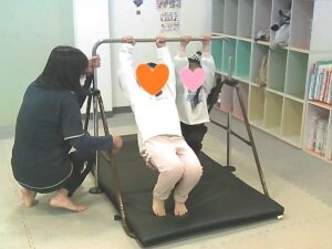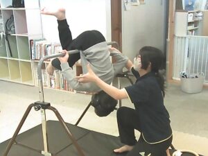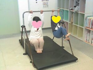 鉄棒ぶら下がりは、2人並んで5秒キープ:;(∩´﹏`∩);::;(∩´﹏`∩);: