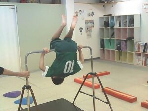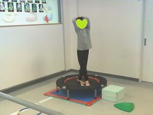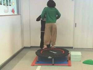 トランポリンで大きく跳んで新鮮な果物を探して・・・