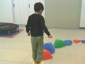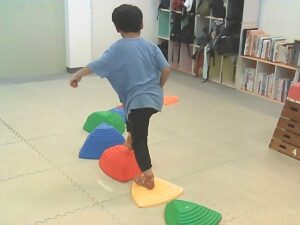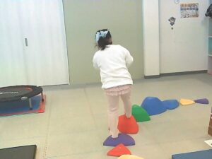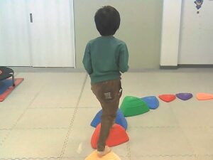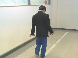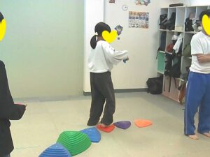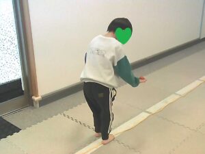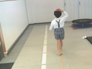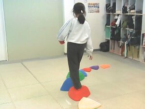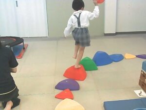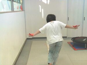 手のひらや頭に乗せたピザ生地(お手玉)を落とさないように歩きます!!