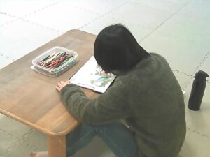 漢字のクロスワードやぬりえをする子も