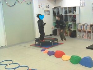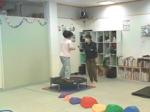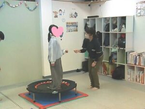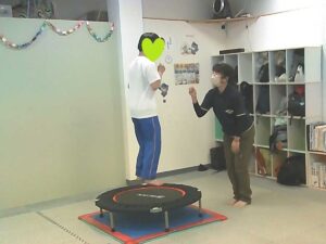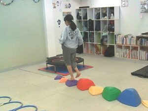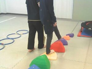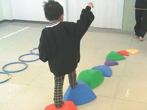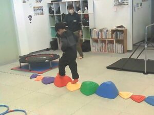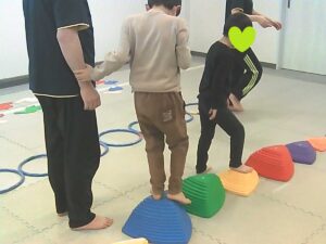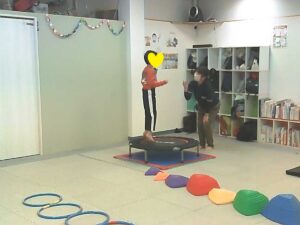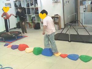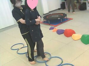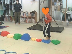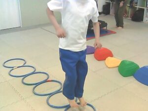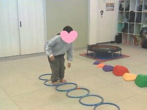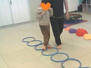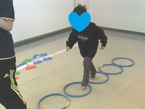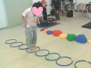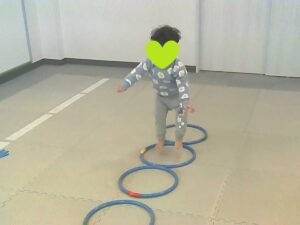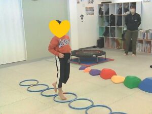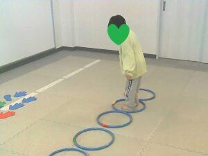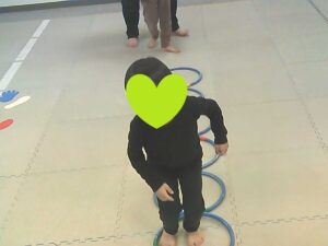 フープジャンプは横ジャンプやケンケンパーなど、回を追う毎に難しくなってきます( ゚Д゚)