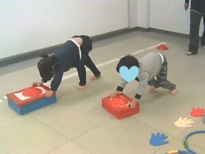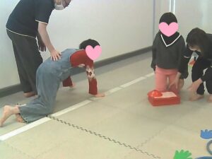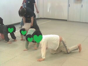 運動あそびでは、久しぶりのエビカニクスからスタートです!