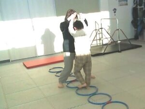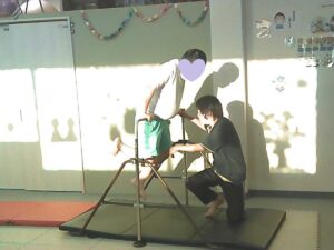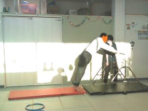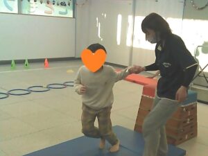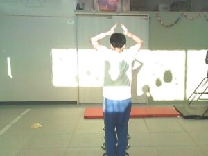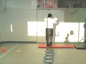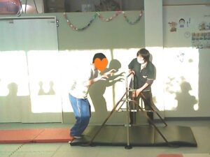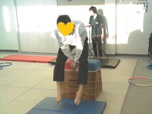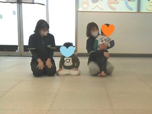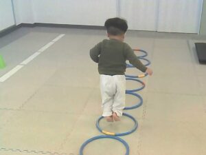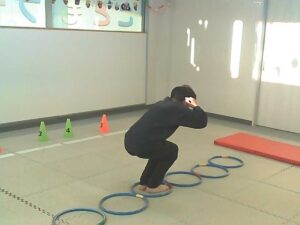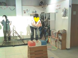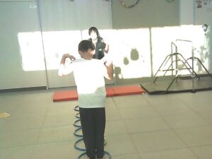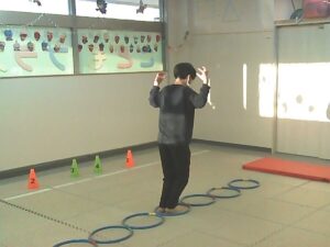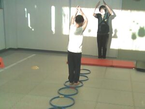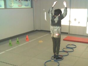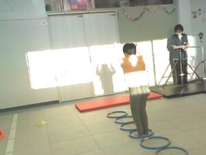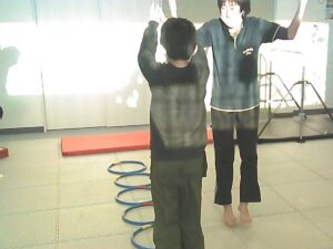 フープは「1・肩タッチ 2・頭タッチ 3・手を叩く」(・。・;