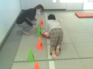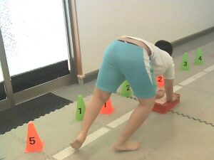 数字コーンを1・2・3の順にタッチしながらすすむよ!!