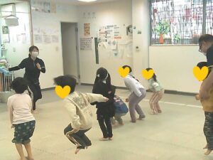 ご挨拶をして、ストレッチ・忍者ゲーム・GO!STOP!!