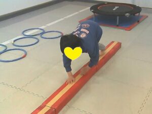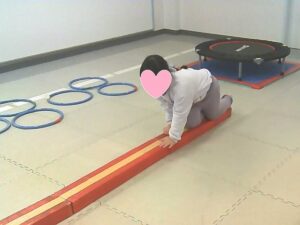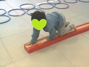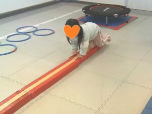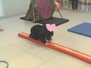 平均台を犬歩きで進みます🐶