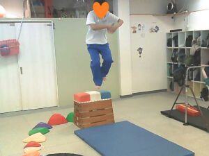 大きな岩をよじ登ってジャンプ