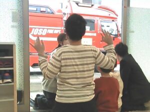 実際の火災では、放火よるものも多いそうです。「放火を防ぐために、家の周りに燃えやすい物を置かない」という貴重なお話を聞くことができました。