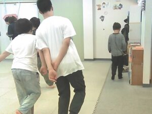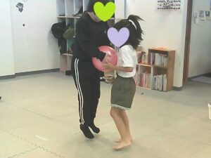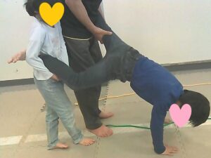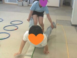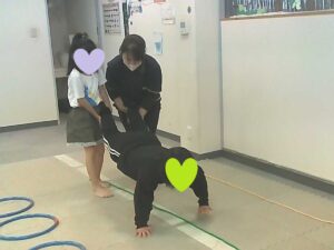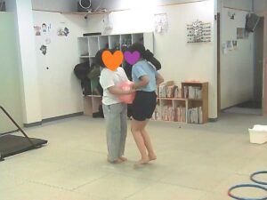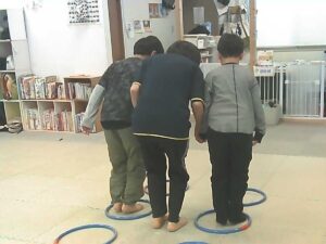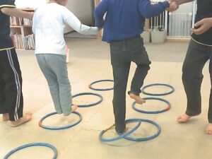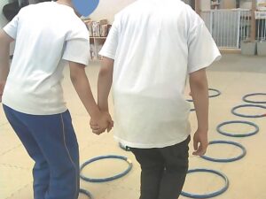 手を繋いでフープジャンプ☆