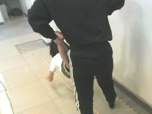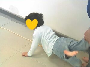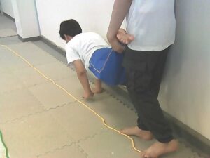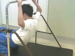 先ずは手押し車!ぐらぐら揺れる足をしっかり支えてね